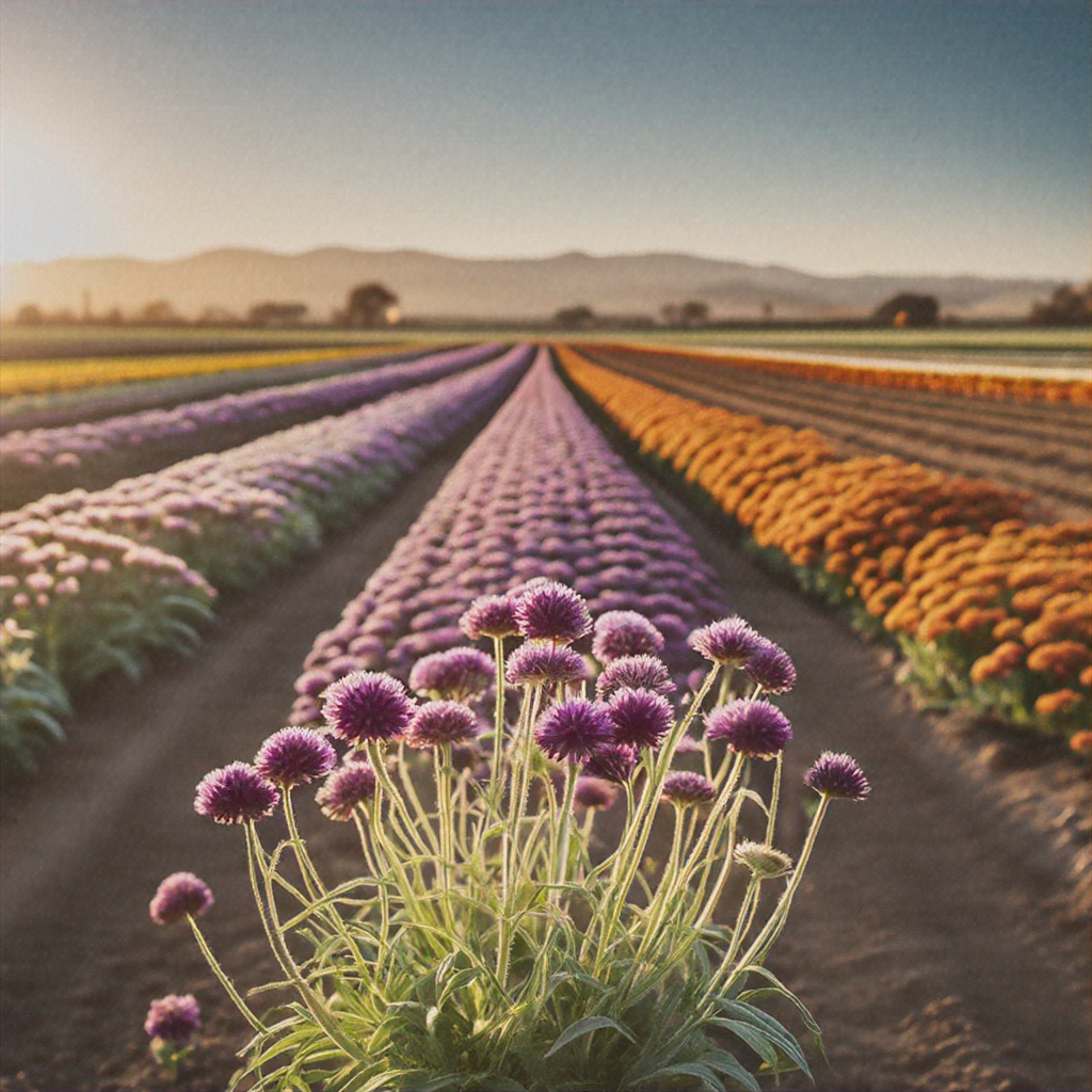 Knautia, also known as the Pincushion Flower, is a genus of perennial plants that boast a range of vibrant colors, including shades of purple, red, and pink. These flowers are known for their distinctive, globe-shaped blooms that resemble pincushions, hence the common name. Knautia species are typically drought-tolerant, making them well-suited for the often arid climate of California. They thrive in well-drained soils and can adapt to a variety of growing conditions, making them a versatile choice for both small-scale gardens and large-scale agricultural settings.